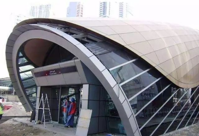 鋁板幕墻所采用的優(yōu)質(zhì)鋁強(qiáng)度高,且由于開(kāi)口處采用焊接工藝,大大提高了鋁板的鋼度,確保了幕墻的抗風(fēng)、防震、防雨水滲漏、防空氣滲透、防雷、抗沖擊效果。鋁單板可加工成不同規(guī)格的平板、雙曲面板、異形板等各種復(fù)雜形狀,鈑金成形后,經(jīng)過(guò)表面處理,可進(jìn)行氟碳噴涂、丙稀酸噴涂及粉末噴涂,色彩可任意選定,廣泛用于室內(nèi)外裝飾。